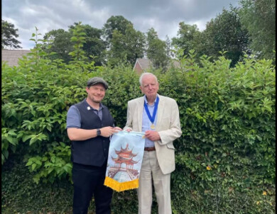 During the meeting in Welshpool, the Rotary Clubs of Hangzhou and Welshpool exchanged club flags as a symbol of friendship and cooperation. Although Shrewsbury Rotary was unable to provide a flag at the time, they kindly promised to send one to Hangzhou next year